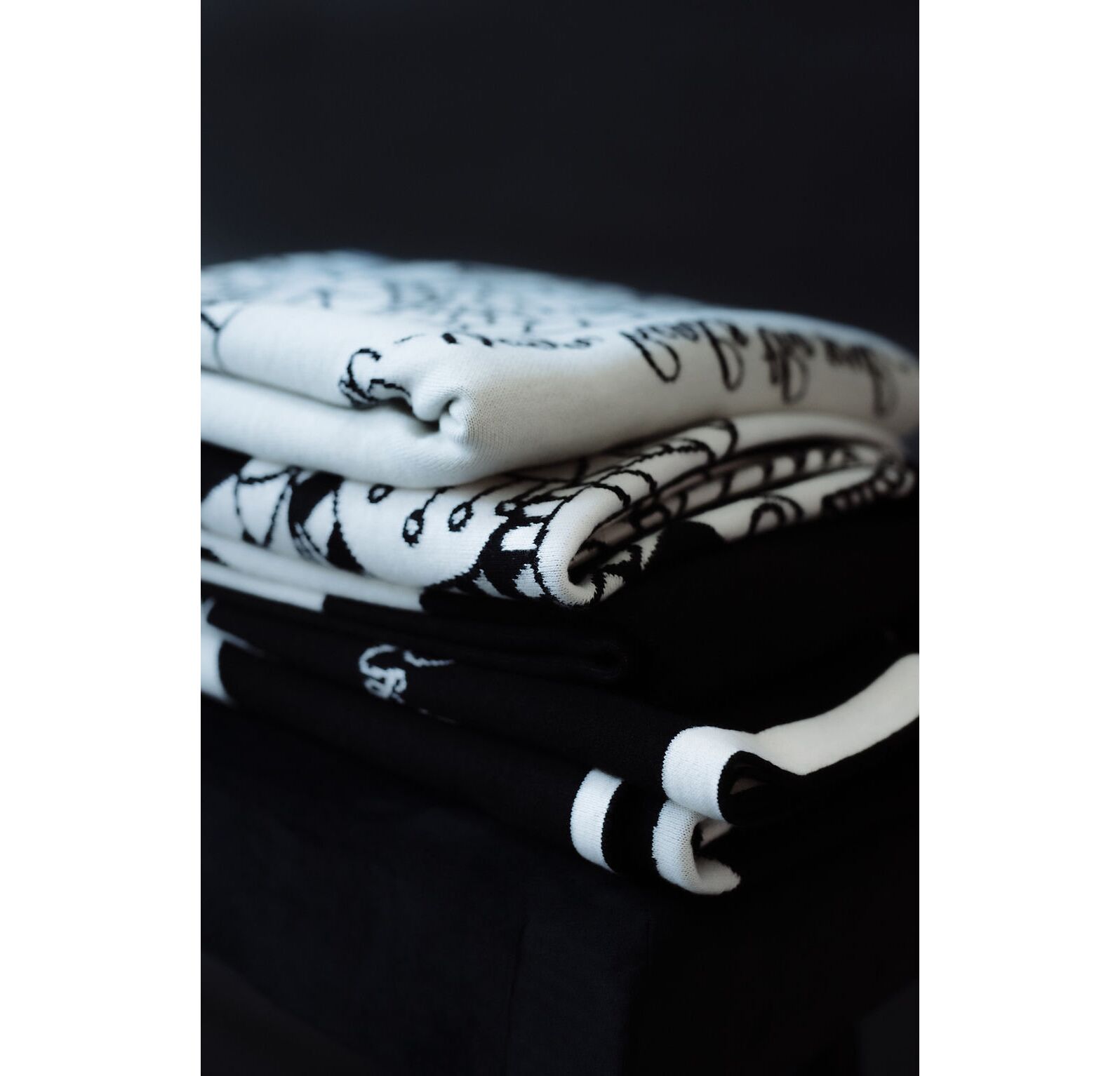 The design of this blanket refers to the world of yoga, a term whose literal translation is yoke, understood as a lace, as a bond or union of the Whole. Union, therefore, in the human being of body, mind and spirit, union of man with the Kingdoms of Nature, bond of our Planet to the galaxy that hosts it and so on, to infinity.