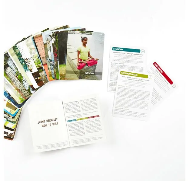 YogaCards Is a deck of cards which shows, on the front the Asana (Yoga pose) and on the...